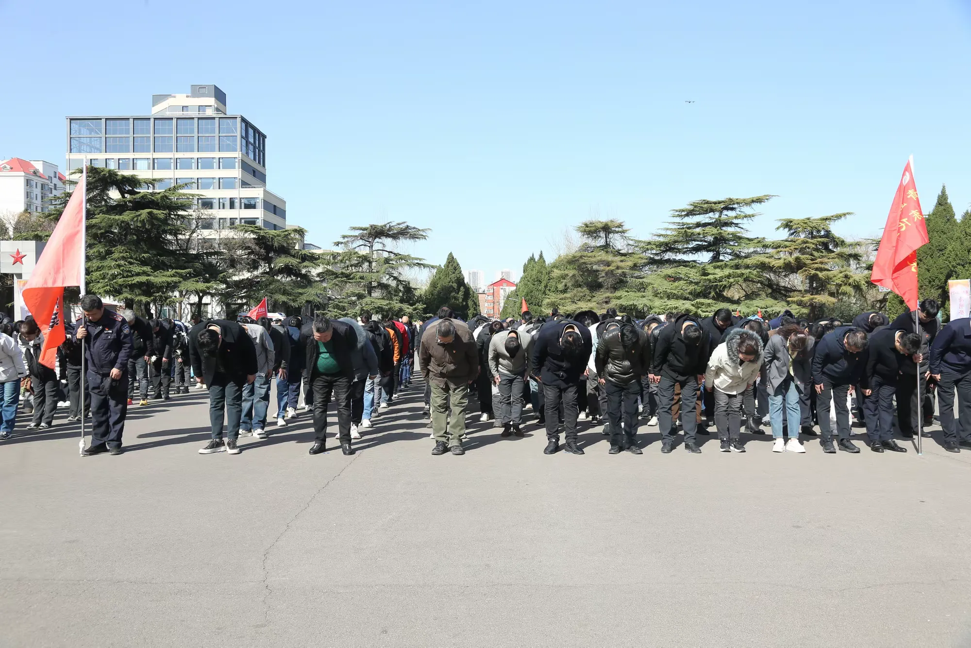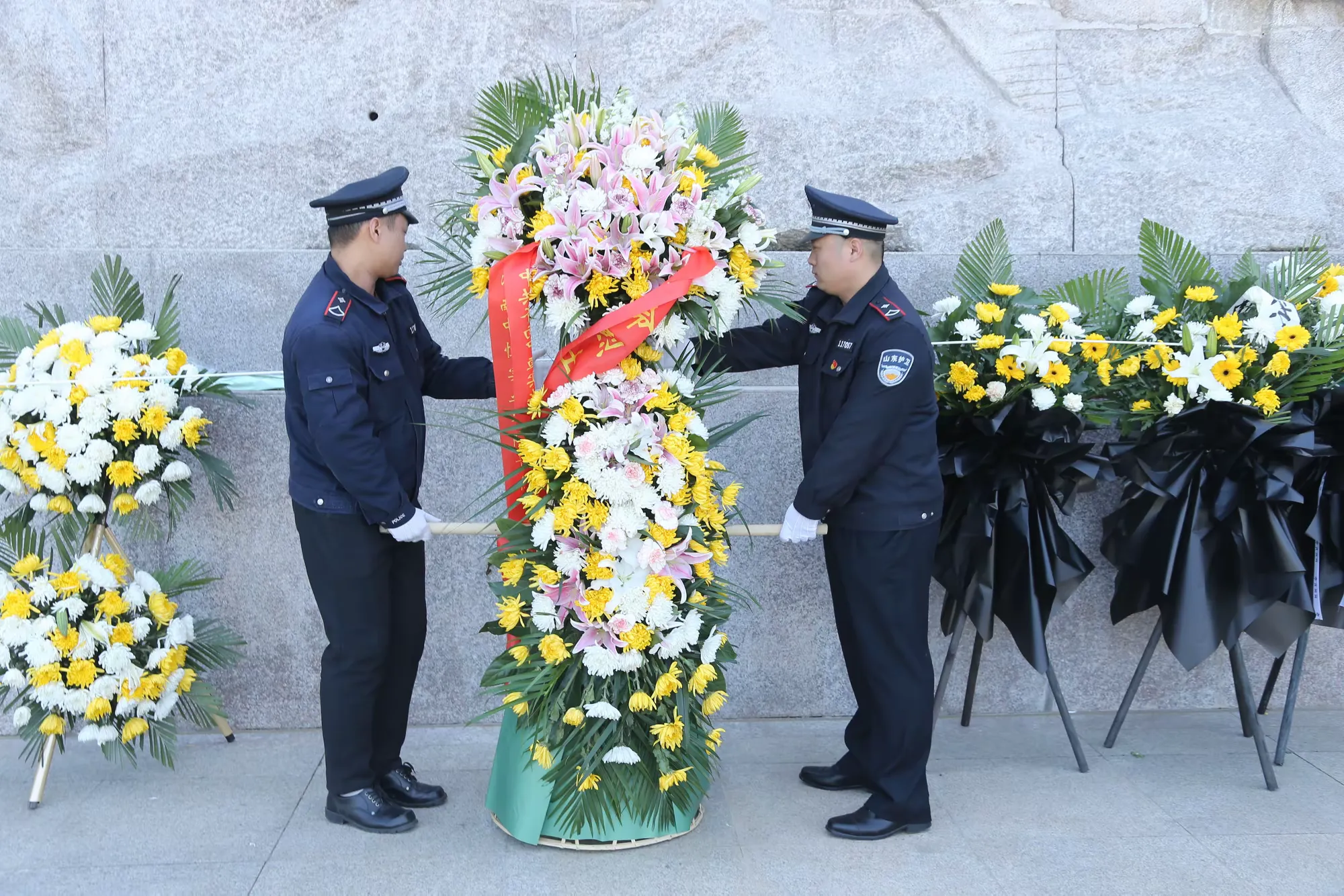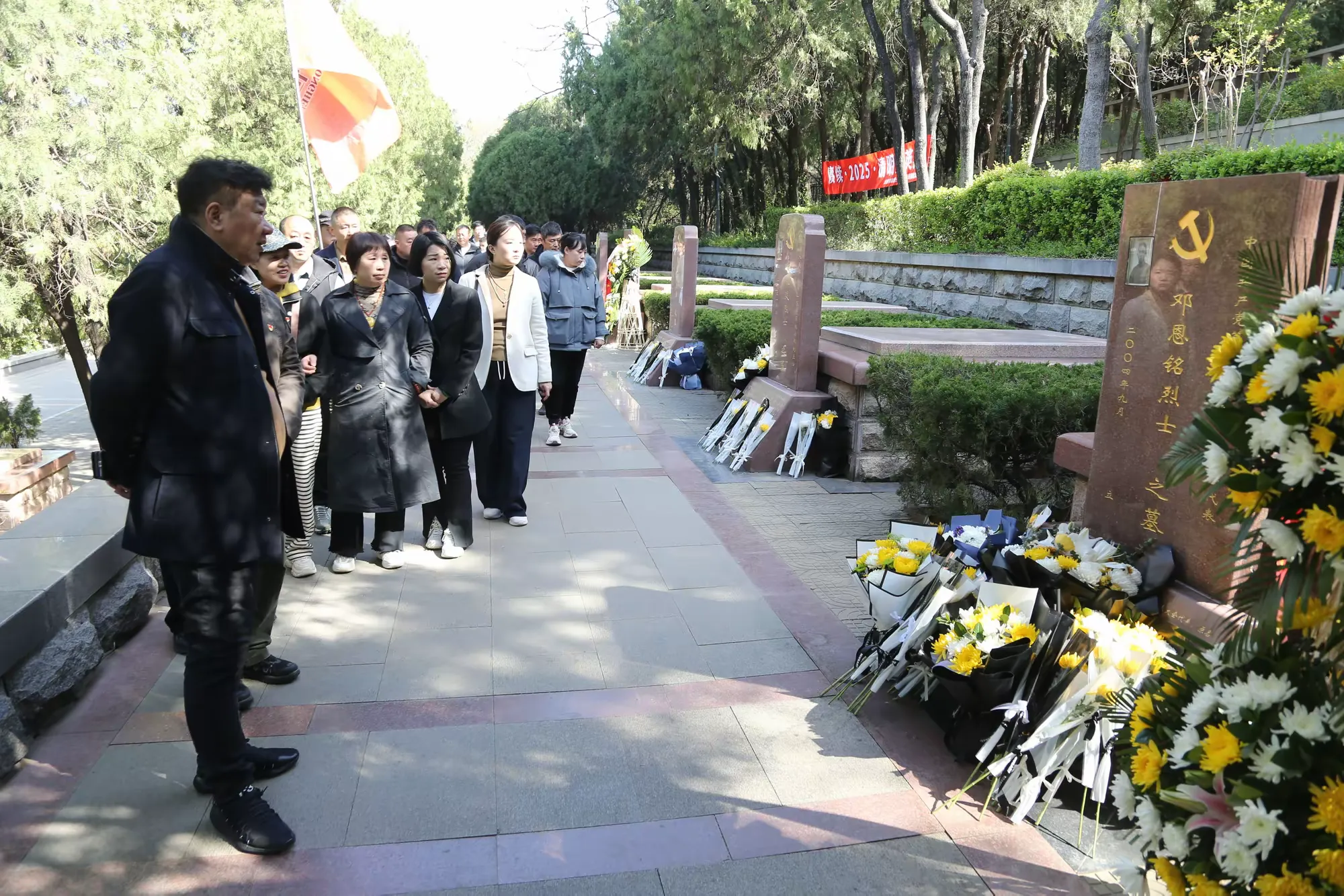 英雄广场上,巍峨的革命烈士浮雕庄严肃穆,全体人员整齐列队,奏唱中华人民共和国国歌,致悼词,向长眠于此的革命烈士敬献花篮、行三鞠躬礼,以此表达对民族英魂最深切的缅怀。激昂的中华人民共和国国歌,回荡在广场上空,点燃了每个人心中的爱国热情。饱含深情的悼词,诉说着对革命烈士的无限敬仰与感激。庄重而神圣的敬献花篮仪式和三鞠躬礼,使大家神情凝重,向那些为了民族解放事业长眠于此的英雄们致以最诚挚、最深切的缅怀。