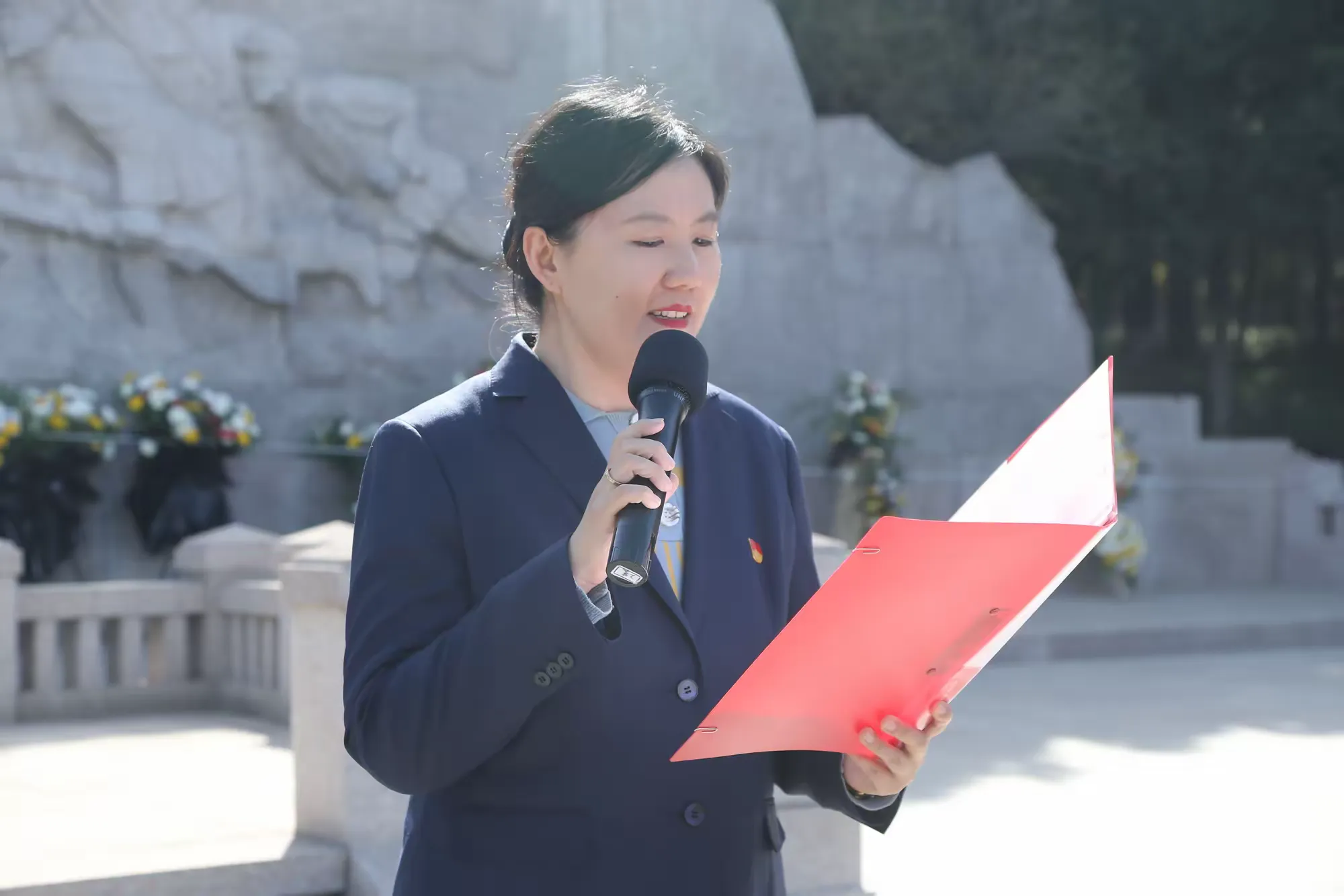 仪式结束后,队伍沿着台阶缓缓而上。在党的一大代表王尽美、邓恩铭烈士墓前,大家驻足凝思。“尽善尽美唯解放”“不惜唯我身先死”,这简短而又铿锵的话语,跨越了百年时空,直击每个人的心灵。泛黄的照片、斑驳的碑文,仿佛时光的隧道,将大家带回到1921年嘉兴南湖那艘红船上。在那里,中国共产党诞生了,共产党人“为有牺牲多壮志”的初心密码,也在这一刻被触摸到。烈士墓碑上的每一个名字,都是一部可歌可泣的英雄史诗,诉说着共产党人筚路蓝缕、艰苦创业的伟大征程。