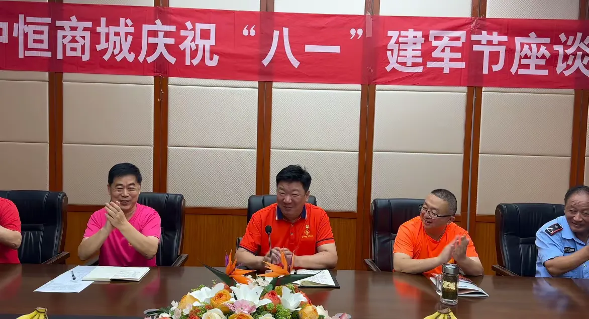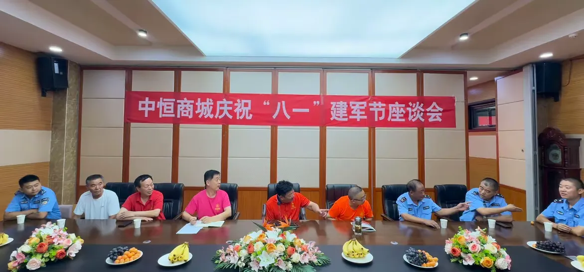 企业新闻 > 中恒商城召开庆“八一”退役军人代表座谈会为庆祝中国人民解放军建军 98 周年,8 月 1 日,中恒商城党委组织召开了庆“八一”退役军人代表座谈会,大家共同追忆军旅生涯,畅谈商城发展。