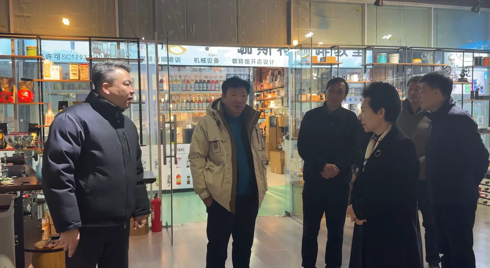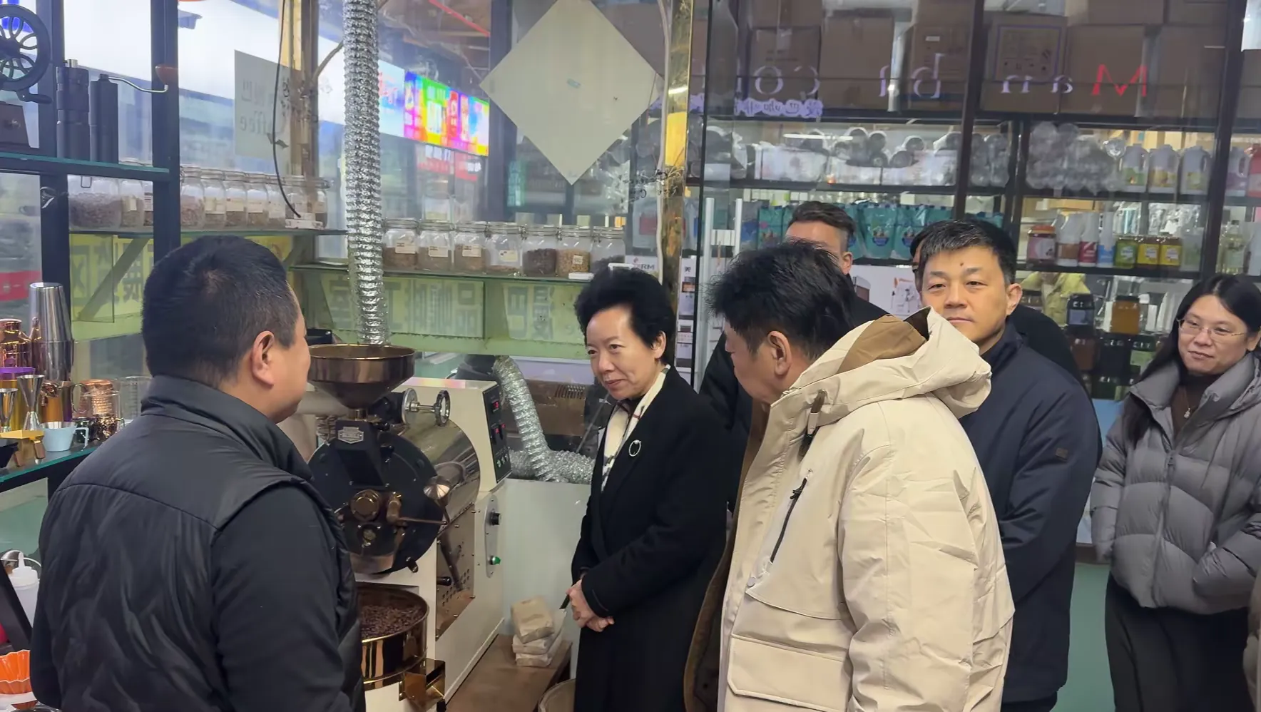 王玉洁主席一行实地考察了咖啡、小商品等市场,并检查了消防安全措施的执行情况,同时详细询问了商户对消防安全知识的掌握及市场运营状况。