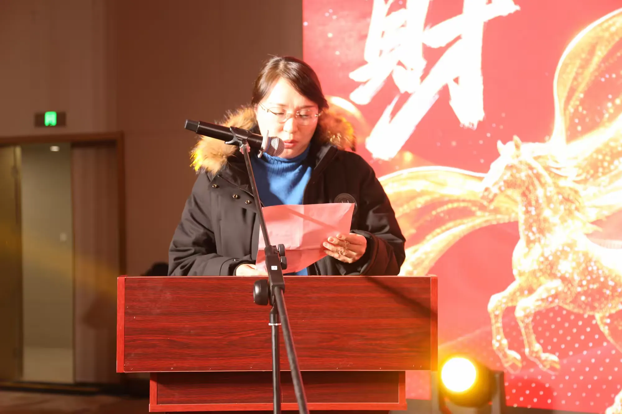 天桥区市场监督管理局官扎营市场监管所所长陈芳,代表天桥区个体劳动者协会及中恒商城宣读《关于表彰2025年度“文明诚信商户”“高质量发展奖”“新媒体赋能奖”的决定》。