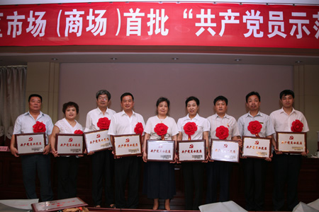 近几年来,中恒商城党建工作在中恒公司党委的领导下,不断加强党员经营业户的理想信念、遵法守纪、诚信经营等教育,提高党员经营业户的综合素质,相继开展了“共产党员柜台”、“共产党员文明诚信经营者”等活动,增强了党员荣誉感、责任感, 市场业户党员在市场诚信经营、消防安全、社会公益事业、配合支持市场工作、共建和谐商城等方面发挥了模范带头作用,推动了市场的健康稳定和谐发展。