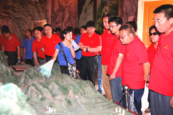 在红旗渠纪念馆,他们认真聆听了林州人民建造“人工天河”红旗渠的感人事迹。观赏了一幅幅林州人民当年战天斗地的感人图片、雕塑,瞻仰了一件件珍贵的实物和一处处当年林州人民开山凿石留下的痕迹,身临其境地感受了林州人民当年建筑红旗渠表现出来的“自力更生、艰苦创业、团结协作、无私奉献”的精神。