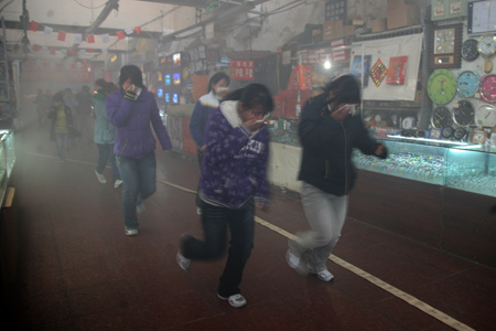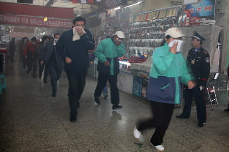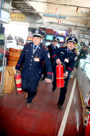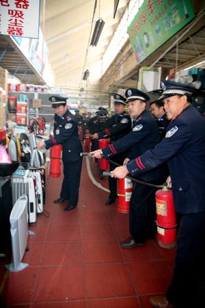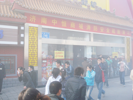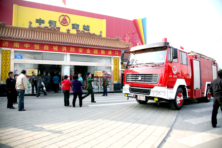 今年为把“ 119 消防宣传日”活动与冬季防火工作有机结合起来,普及消防知识,提高自防自救能力,更好地做好商城消防安全工作,经过精心组织,周密谋划, 11 月 5 号、 6 号又进行了一次消防实战演习。此次演练分为两个阶段,第一阶段为紧急疏散,第二阶段由商城员工、业户等相关人员对灭火器材的操作使用进行现场示范演练。