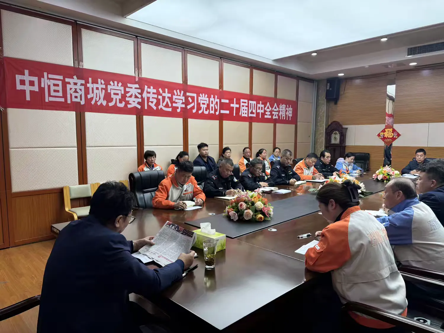 企业新闻 > 中恒商城党委传达学习党的二十届四中全会精神2025年10月27日,中恒商城党委召开党员会议,专题传达学习党的二十届四中全会精神。会议由商城党委书记、总经理刘磊主持,并就学习宣传和贯彻落实工作作出安排部署。