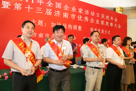 为庆祝企业在党的建设中取得的伟大成就,表彰企业家为经济建设、社会稳定和企业党的建设中做出的突出贡献,交流企业调整结构、转变发展方式的典型经验,促进全市企业健康持续发展,以更大的成绩向建党九十周年献礼。6月11日济南市企业联合会和济南市企业家协会,在南郊宾馆召开了“2011年全国企业家活动日庆祝年会暨第十三届济南市优秀企业家表彰大会”。中恒总经理刘磊被授予“第十三届济南市优秀企业家”称号。