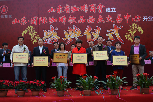 庆典仪式上,还向山东省咖啡商会副会长、理事单位代表进行了授牌。