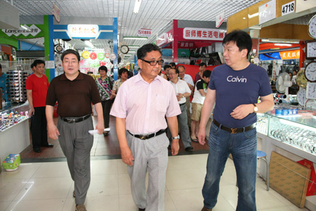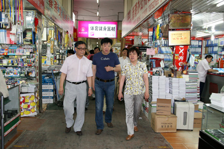 王可敏副主席一行在公司总经理刘磊的陪同下,饶有兴趣地参观了中恒商城小商品市场、工艺礼品、玩具市场,文化、文具市场,体育用品、健身器材市场等,听取了刘磊总经理的介绍,并询问了商城的有关情况。王可敏副主席对中恒商城近十年来不断改革发展,给予了充分的肯定,认为商城在市场经营环境和档次上都有了很大的提升,在经济效益和安置下岗职工就业社会效益方面都取得了很大成绩。