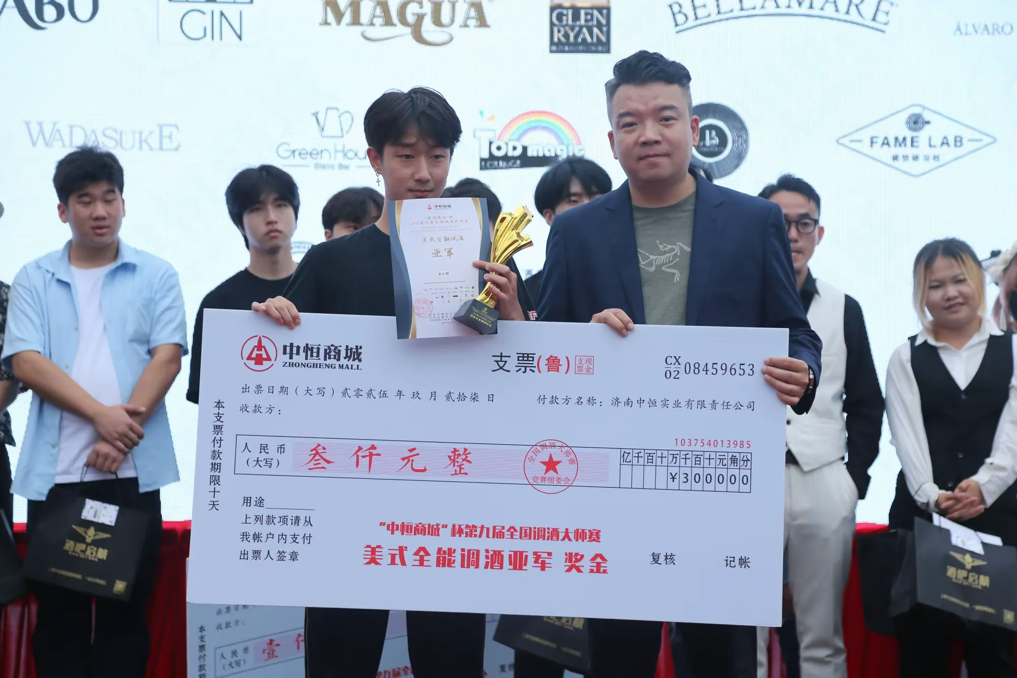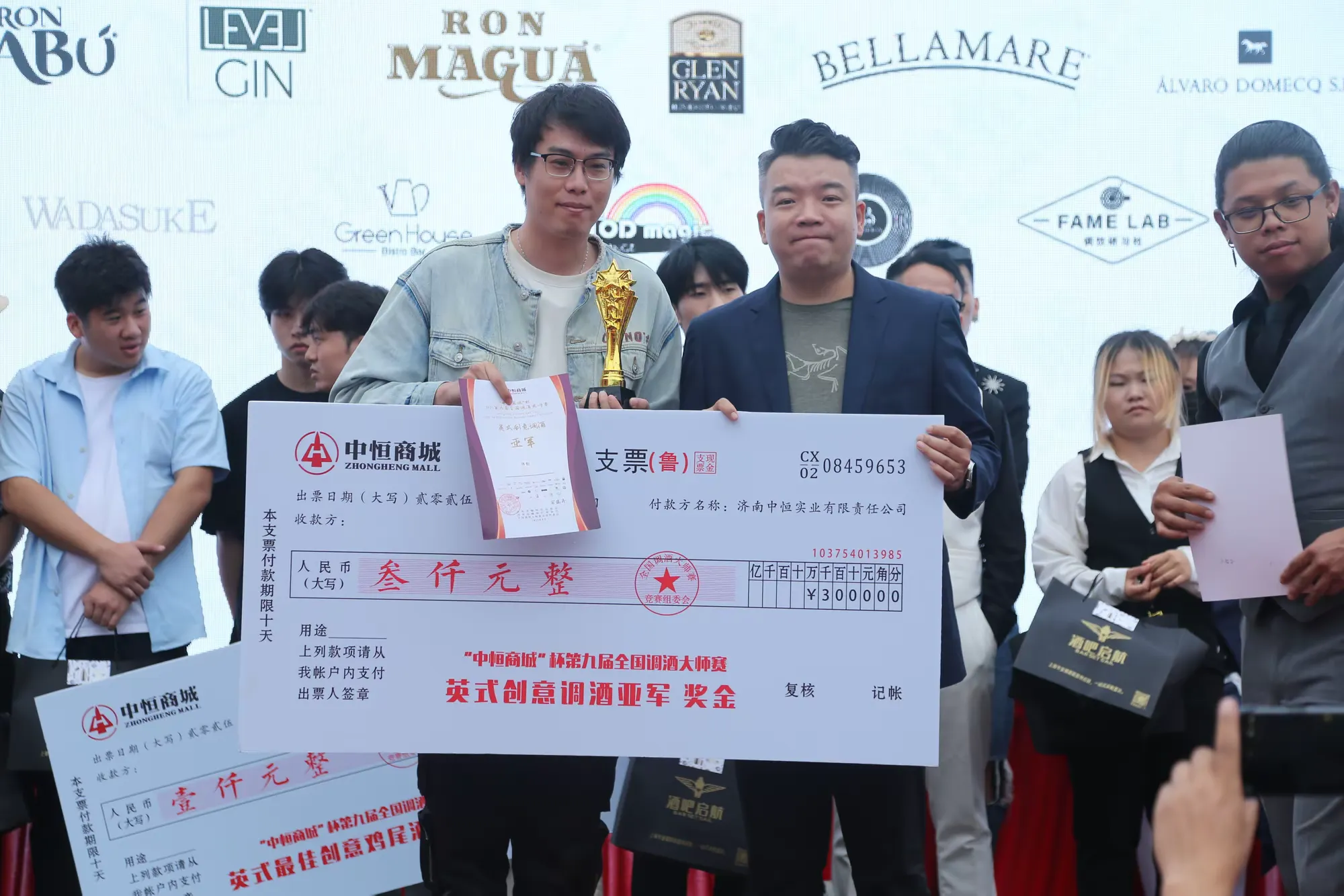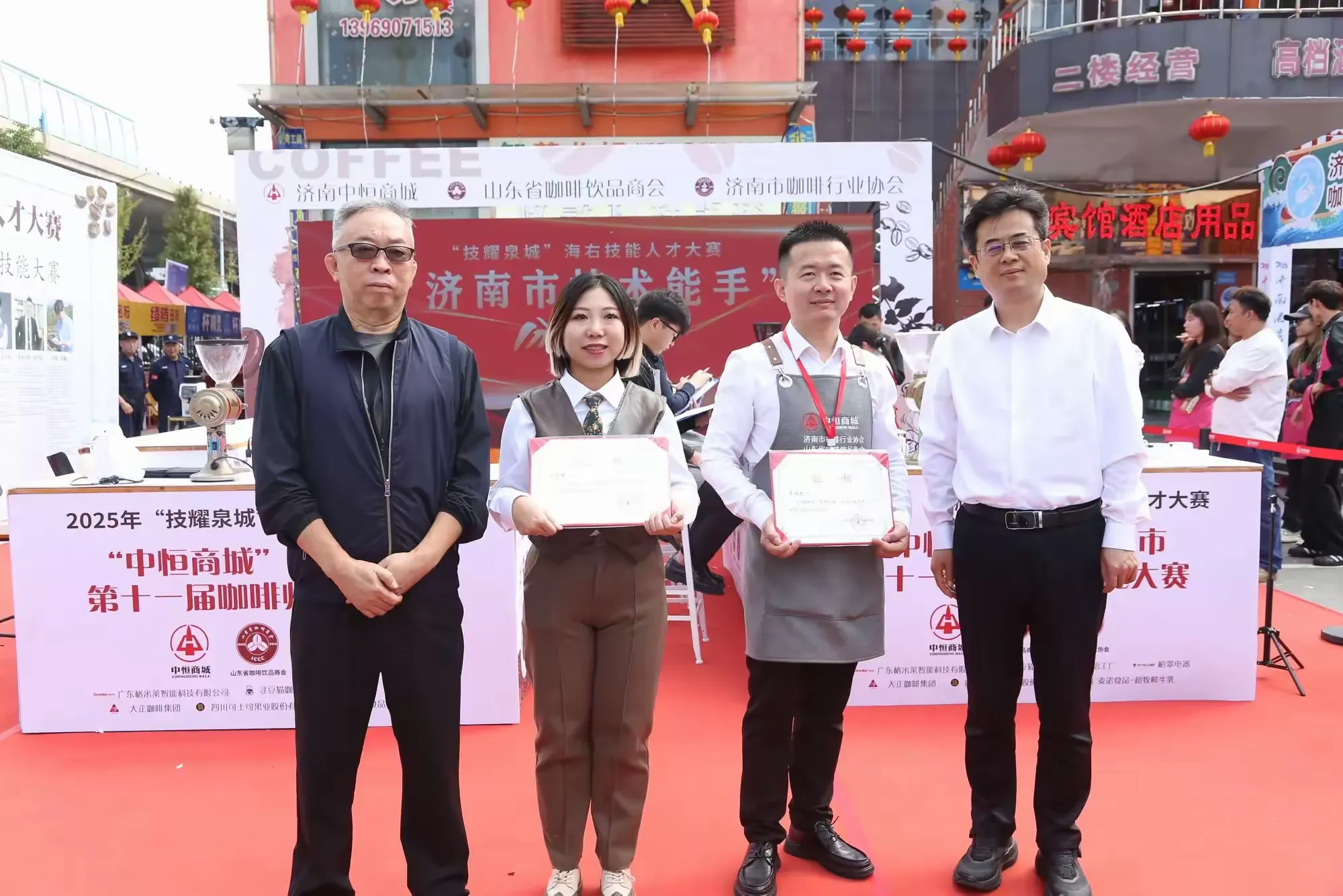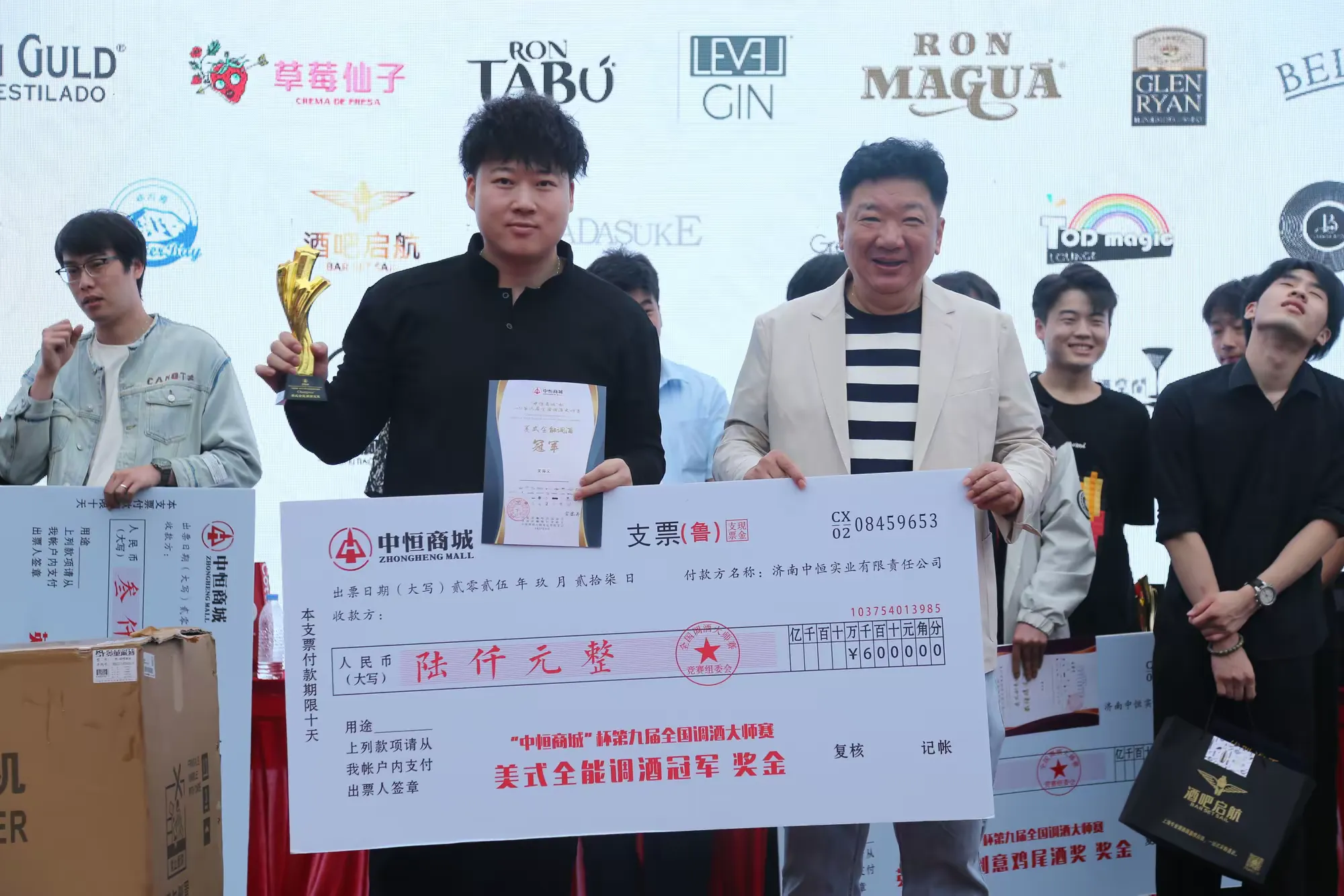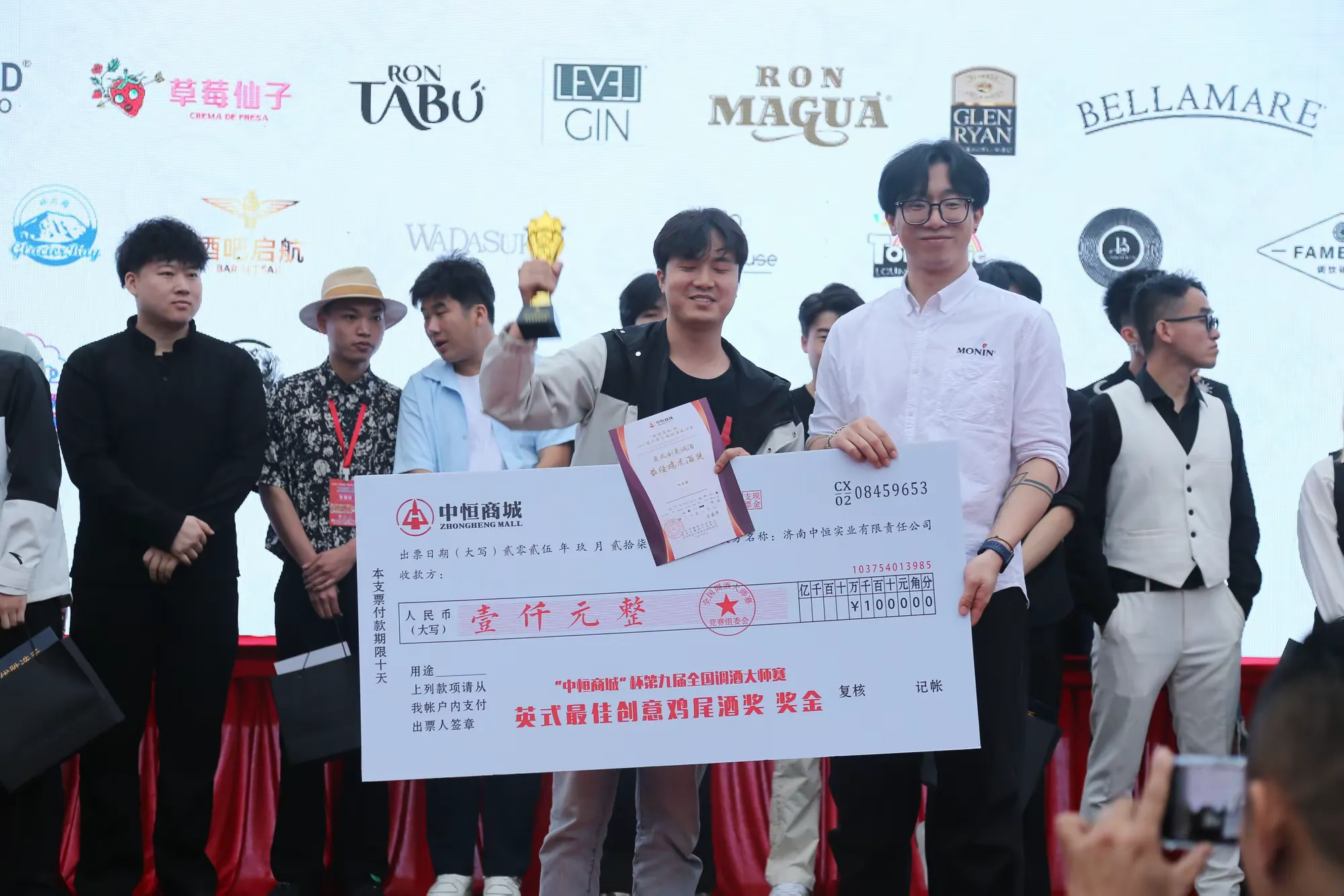 赛后,山东省咖啡饮品商会名誉会长 中恒商城党委书记、总经理刘磊,济南市咖啡行业协会副理事长 中恒商城副总经理董良,分别向英式、美式调酒冠、亚军颁发了奖杯及证书。